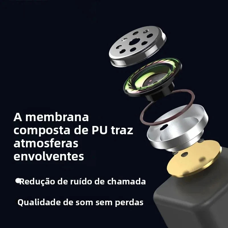 • 🔊 Som Potente e Imersivo – membrana de PU composta que garante graves fortes e áudio limpo.