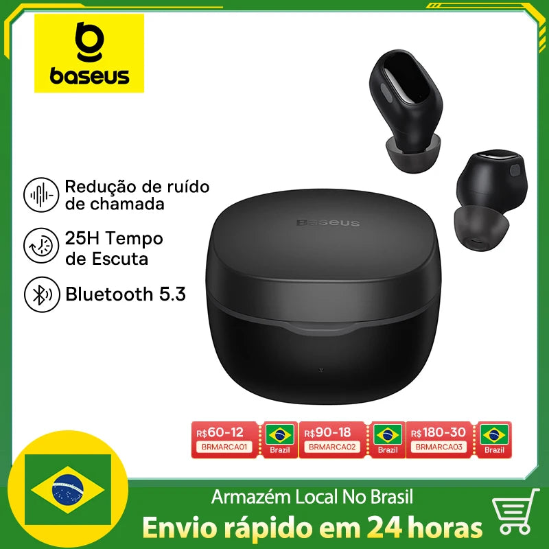🎧 Fone de Ouvido Baseus Encok WM01 Bluetooth 5.3 – Som Premium, Toque Inteligente e até 25h de Bateria