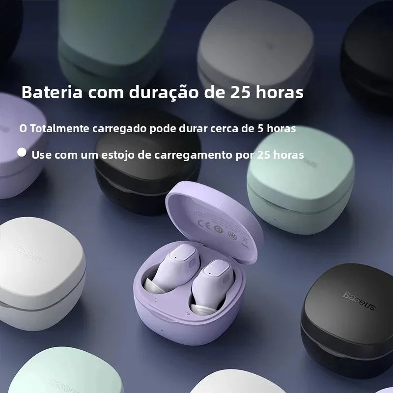 • 🔋 Até 25h de Reprodução – 5h contínuas + recargas pelo estojo (300mAh).