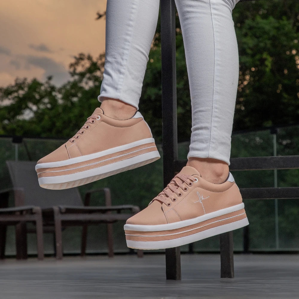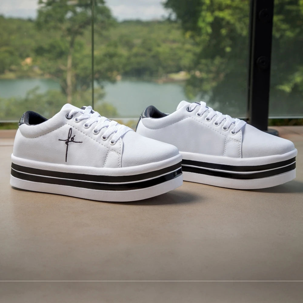 O Tênis Feminino GuGi Faith Anabela Platform combina design moderno com conforto e leveza para o dia a dia. Seu visual despojado e versátil traz um toque exclusivo ao look, enquanto a palmilha em EVA e o solado antiderrapante garantem passadas macias, seguras e estáveis.